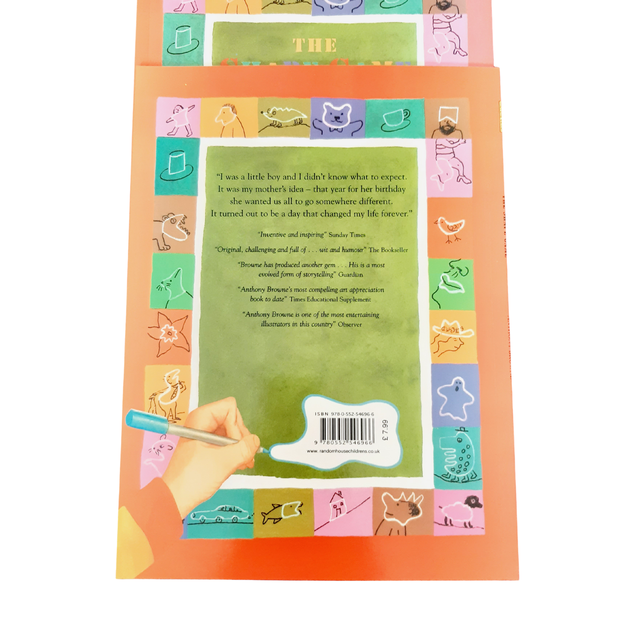 This new book is the product of Anthony Browne's engagement as writer-and-illustrator-in-residence at the Tate Britain in London. There he worked with a thousand children from inner-city schools, teaching literature using the resources in the gallery – and playing the shape game. In his artwork for the book, he surreally transforms, in his signature style, some famous paintings in the Tate's collection.
